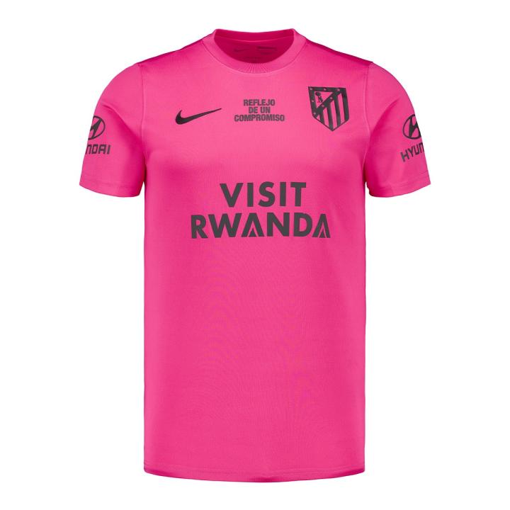为深情呼应10月19日那个充满力量的世界乳腺癌防治日,马德里竞技足球俱乐部与索兰-德卡夫拉斯(那源自西班牙的天然矿泉水品牌,流淌着纯净与关怀)携手,共同编织出一款满载深情的特别版赛前训练球衣。
